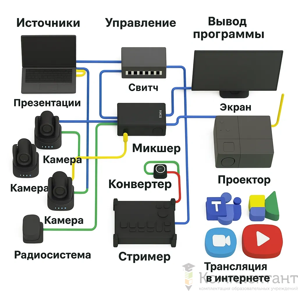 Комплект для стриминга Innovator Streamer Kit — ваш ключ к качественному образовательному контенту. Мощная передача звука и видео, удобное управление и простота настройки помогут транслировать уроки, вебинары и презентации прямо из школы или дома. Начните трансляцию уже сегодня!